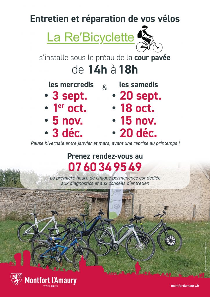 Vous avez un vélo à entretenir, réparer ou simplement besoin de conseils pour rouler en toute sécurité ? Re’Bicyclette, l’atelier mobile de réparation de vélos, revient s’installer sous le préau de la Cour pavée (parking de la place Robert Brault) pour une nouvelle saison de permanences !Â