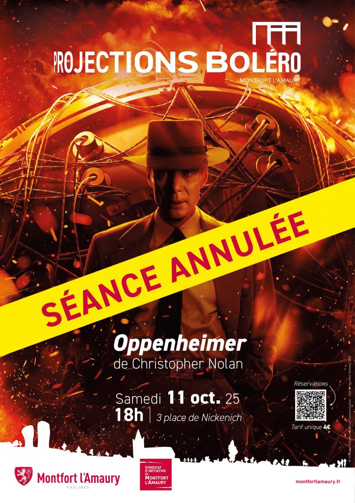 Dans le cadre de la programmation culturelle du Centre Boléro, le Syndicat d’Initiative de Montfort l’Amaury vous propose la projection du film Oppenheimer, réalisé par Christopher Nolan.