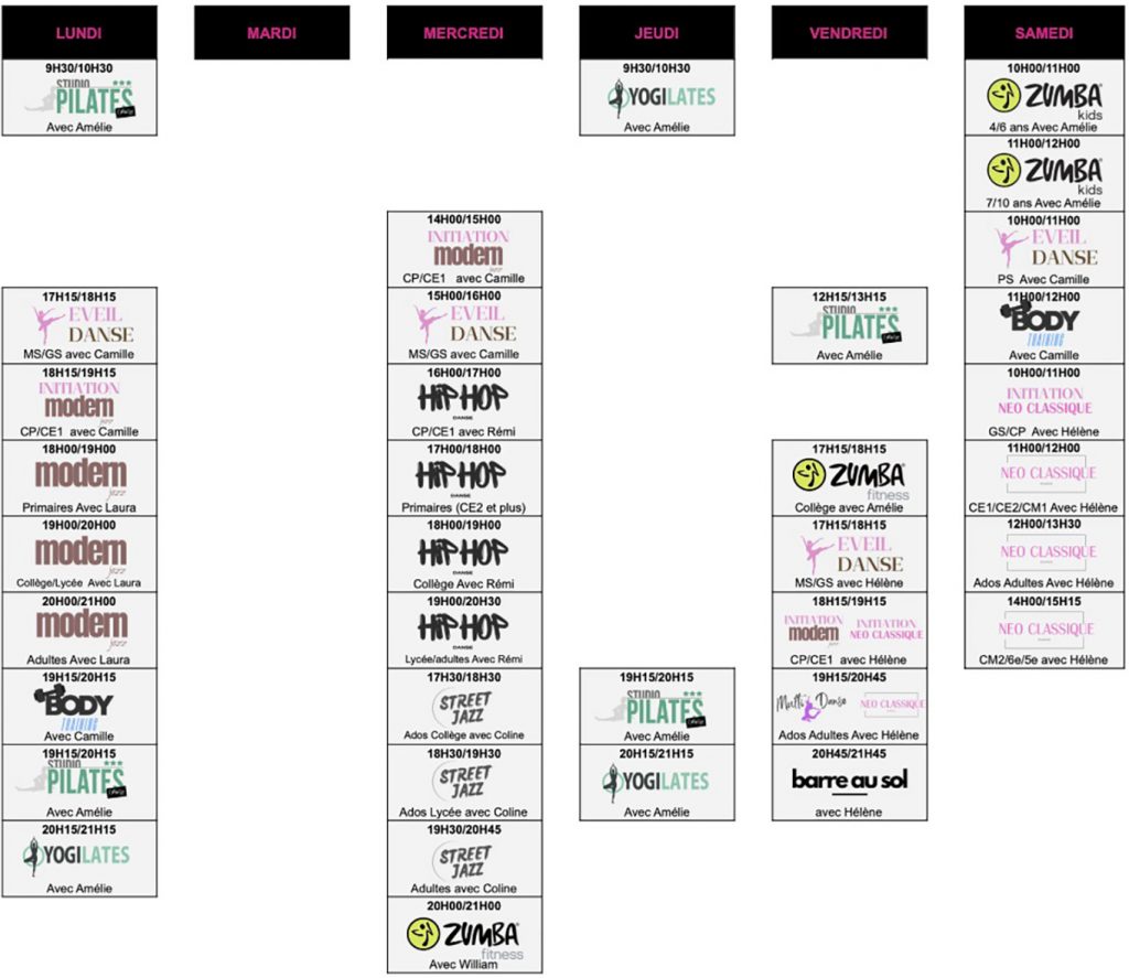 Planning des cours