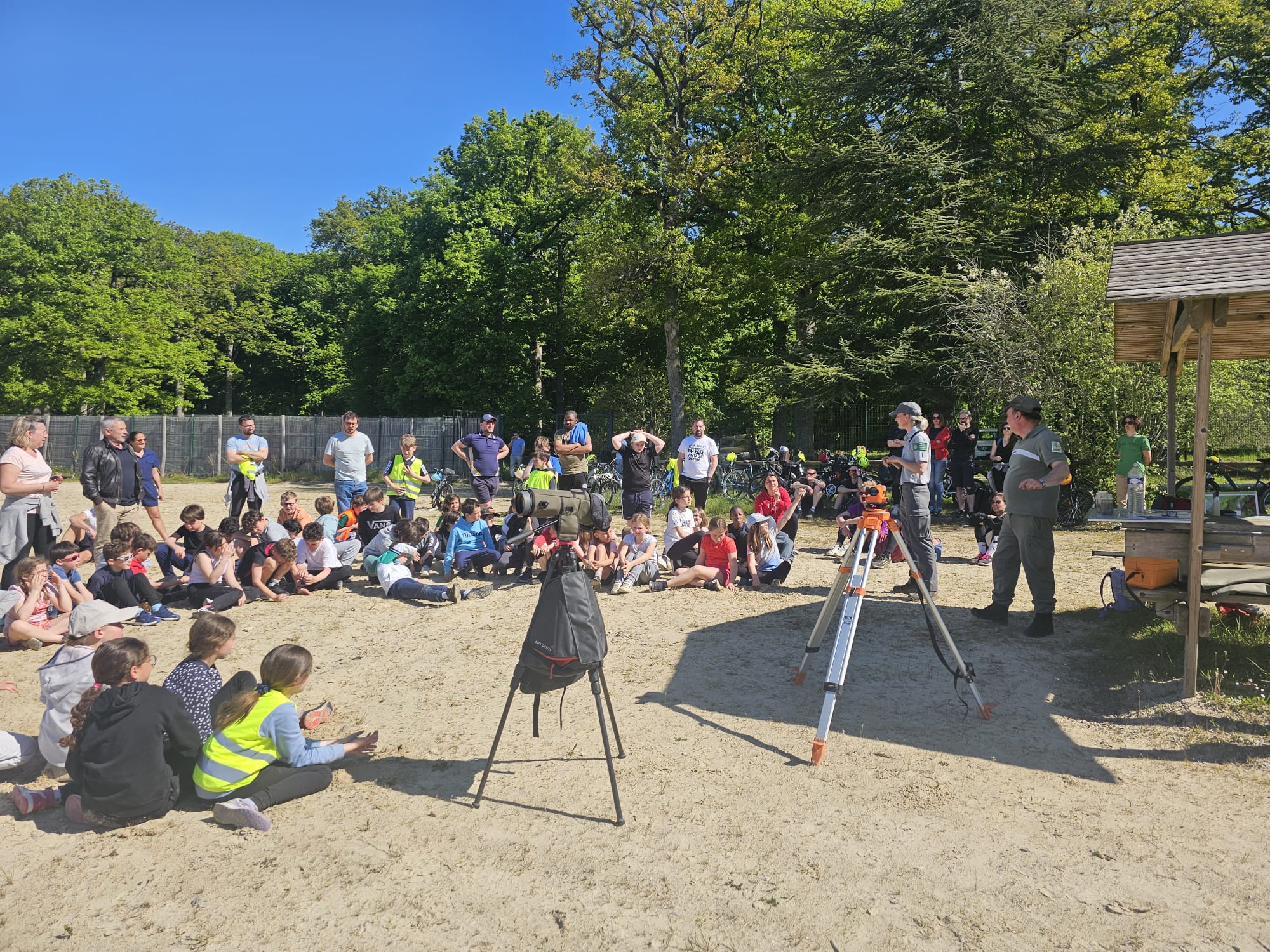 Depuis l’école, enfants et accompagnateurs ont fait le trajet à vélo en direction de la réserve naturelle du Petit Hollande. Là, ils ont pu découvrir ce magnifique écosystème de 600 hectares de forêt et d’étangs où s’épanouit une faune nombreuse, et prendre conscience de l’enjeu que représente la préservation de la biodiversité locale. Ce fut aussi l’occasion de comprendre le système hydraulique des étangs conçus pour alimenter les fontaines du château de Versailles.